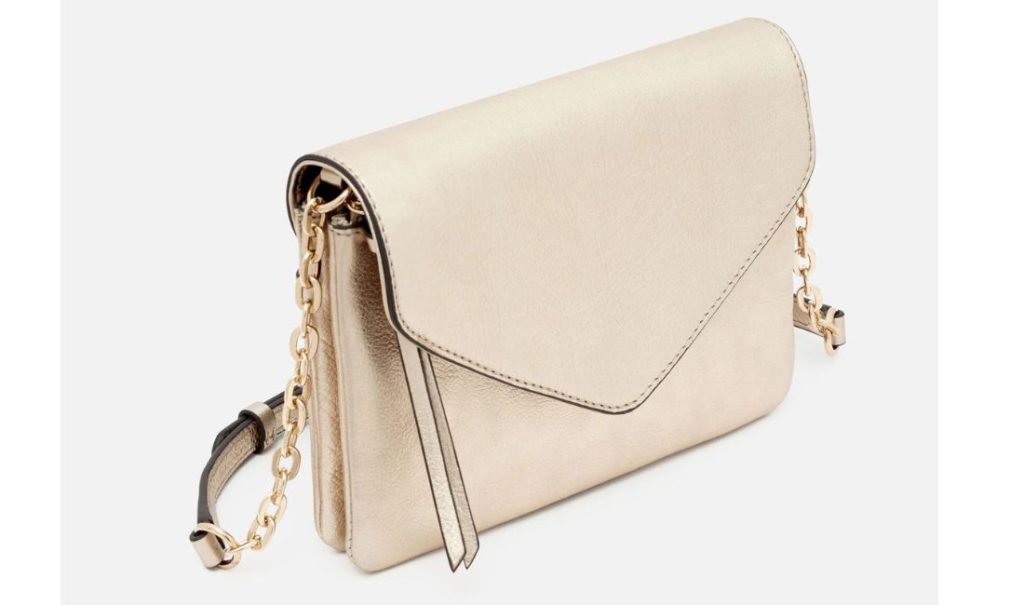 Petit sac lumineux, parfait pour les fêtes. Il capte la lumière et complète une tenue habillée sans la surcharger.